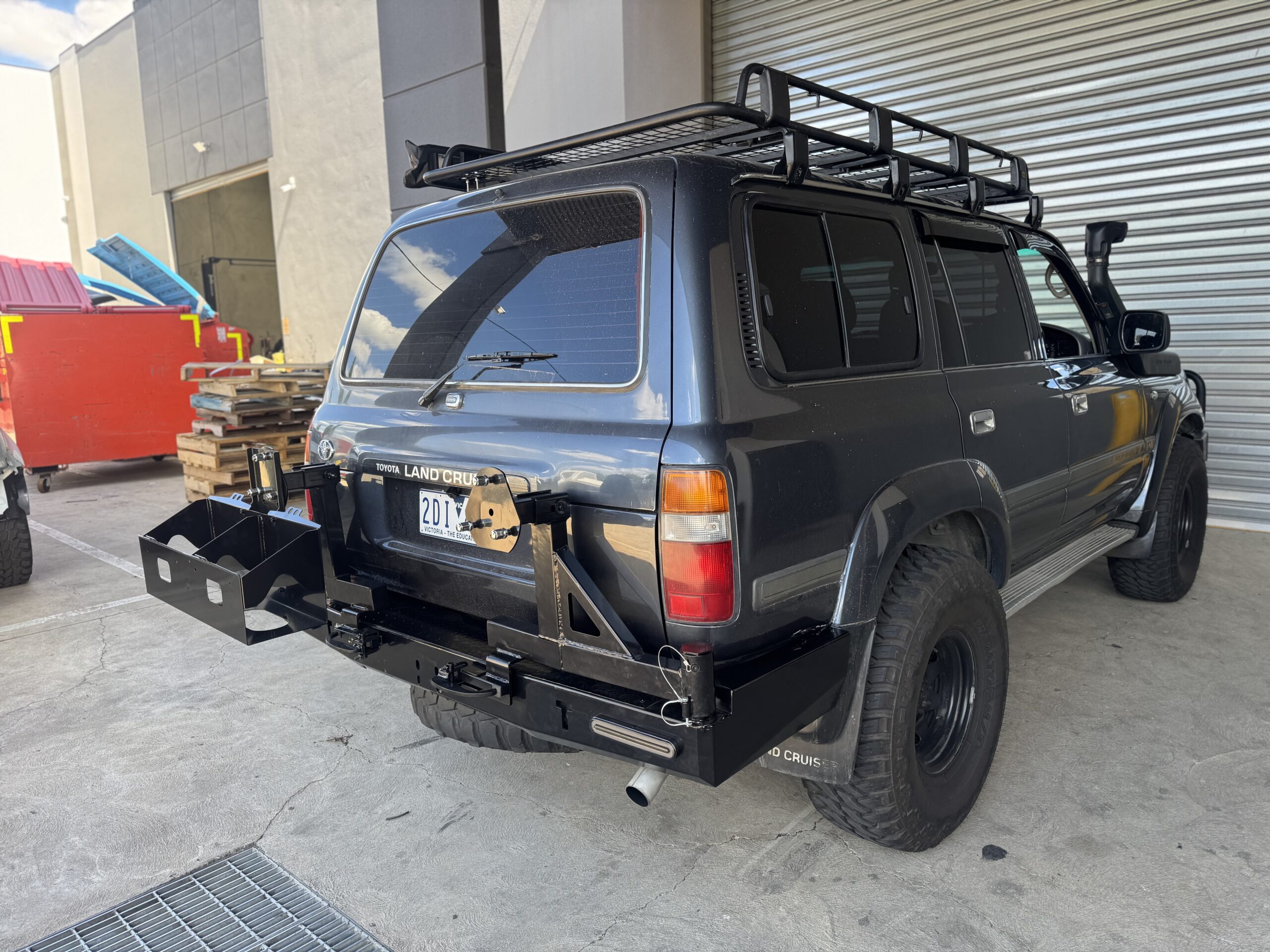 THEAVY DUTY STEEL REAR BAR SPARE WHEEL CARRIER TO SUIT TOYOTA LANDCRUISER 80 SERIES